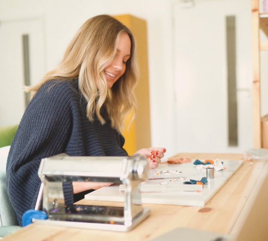 Handmade Clay Check Earrings in Matcha