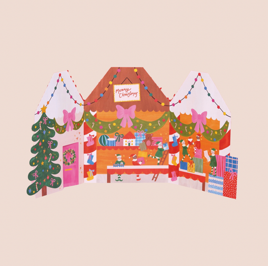 Merry Christmas 3-D Elf Workshop Christmas Card