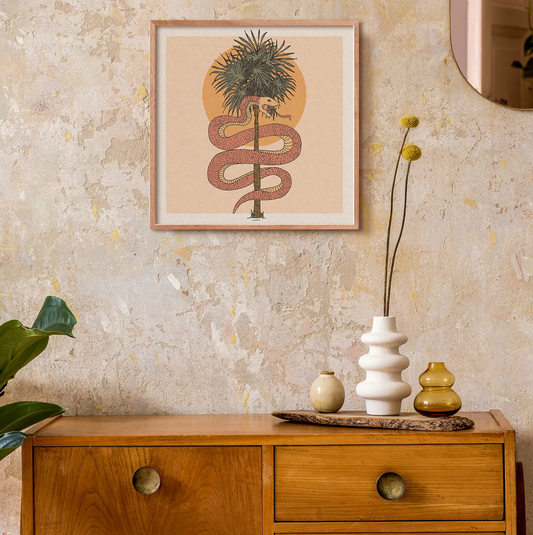 Snake, Sun & Palm Tree 12 x 12 Print