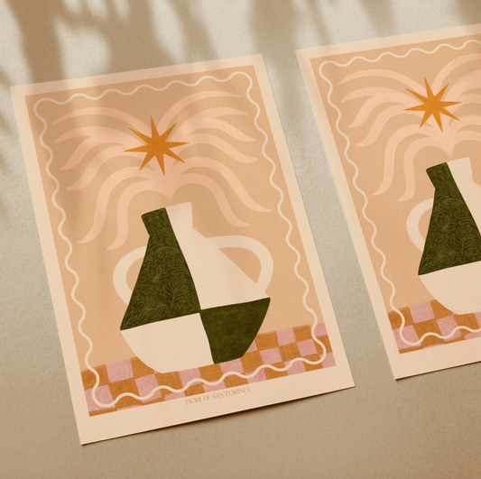 Fiori Santorini 1 Boho Floral Vase A3 Print