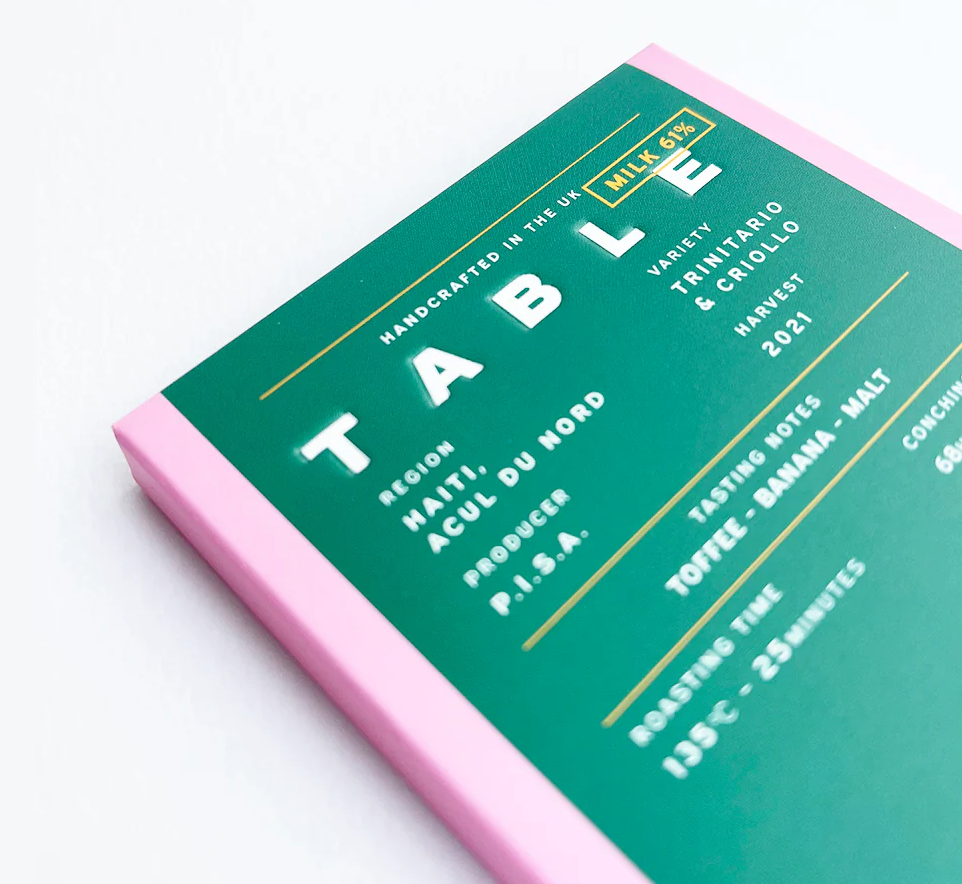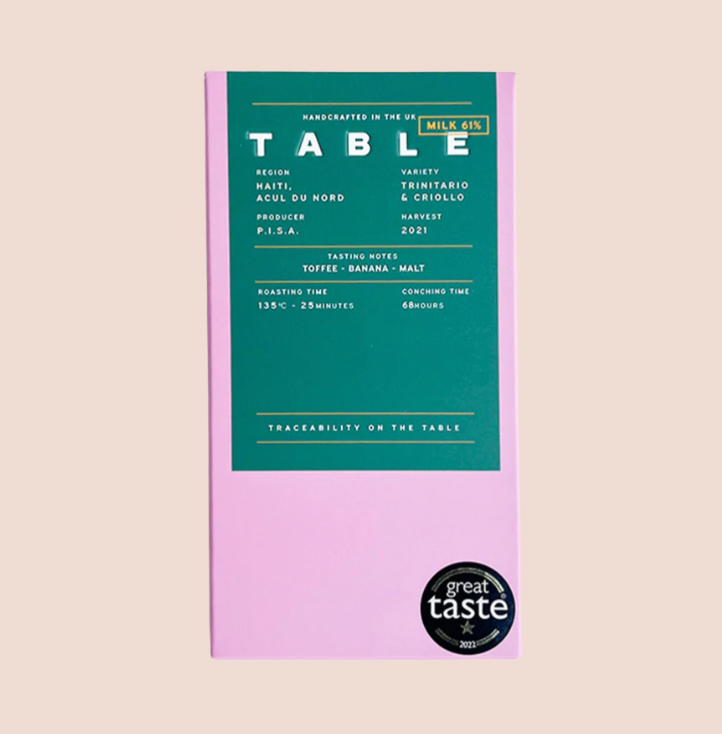 Savour the creamy, rich flavour of Liverpool-based Table Chocolate’s Haiti 61% Milk Chocolate. A single-origin, bean-to-bar milk chocolate crafted from hand-sorted Trinitario & Criollo beans, organically grown in Haiti. Produced in small batches for traceability and deep flavour, this bar marries smooth milk chocolate sweetness with nuanced cocoa depth with notes of toffee, malt and banana — a true treat for chocolate lovers.