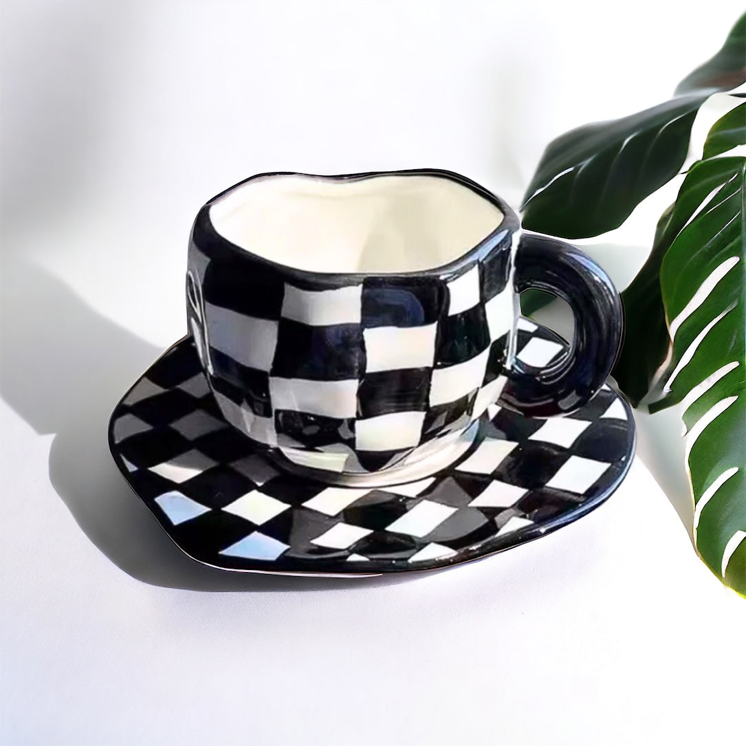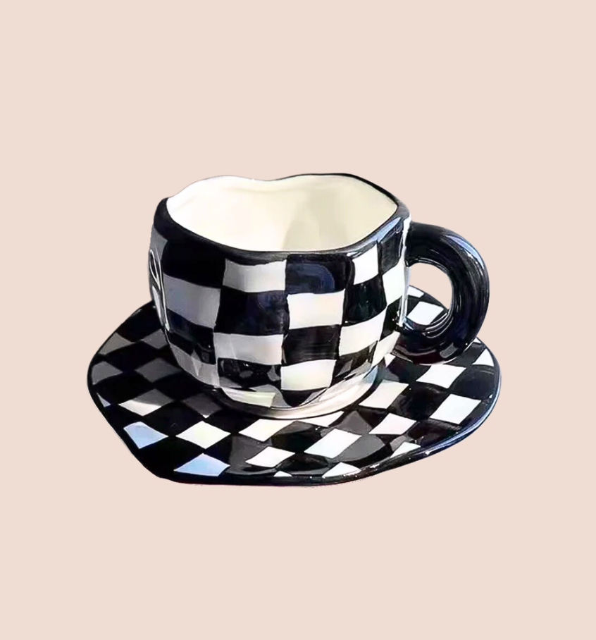 Add a splash of personality to your morning ritual with this exquisite bone china set, featuring a distinctive checkered design. Perfectly crafted for those who appreciate the finer details, this set promises to elevate your tea or coffee experience.