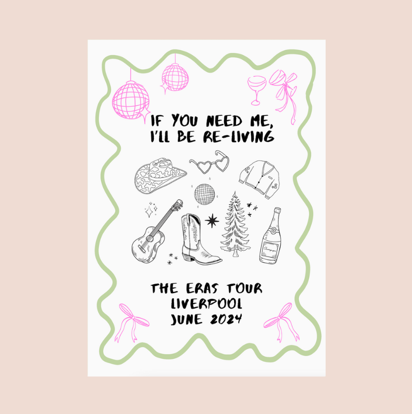 Back in Stock! Discover a unique creation that beautifully captures the essence of The Eras UK Tour. Hand-illustrated with love by Charlotte at Bloom & Brew, this exquisite piece is perfect for adorning your wall or as a cherished gift for a friend who attended the tour. Exclusively available through our store, this print is a true collector's item.