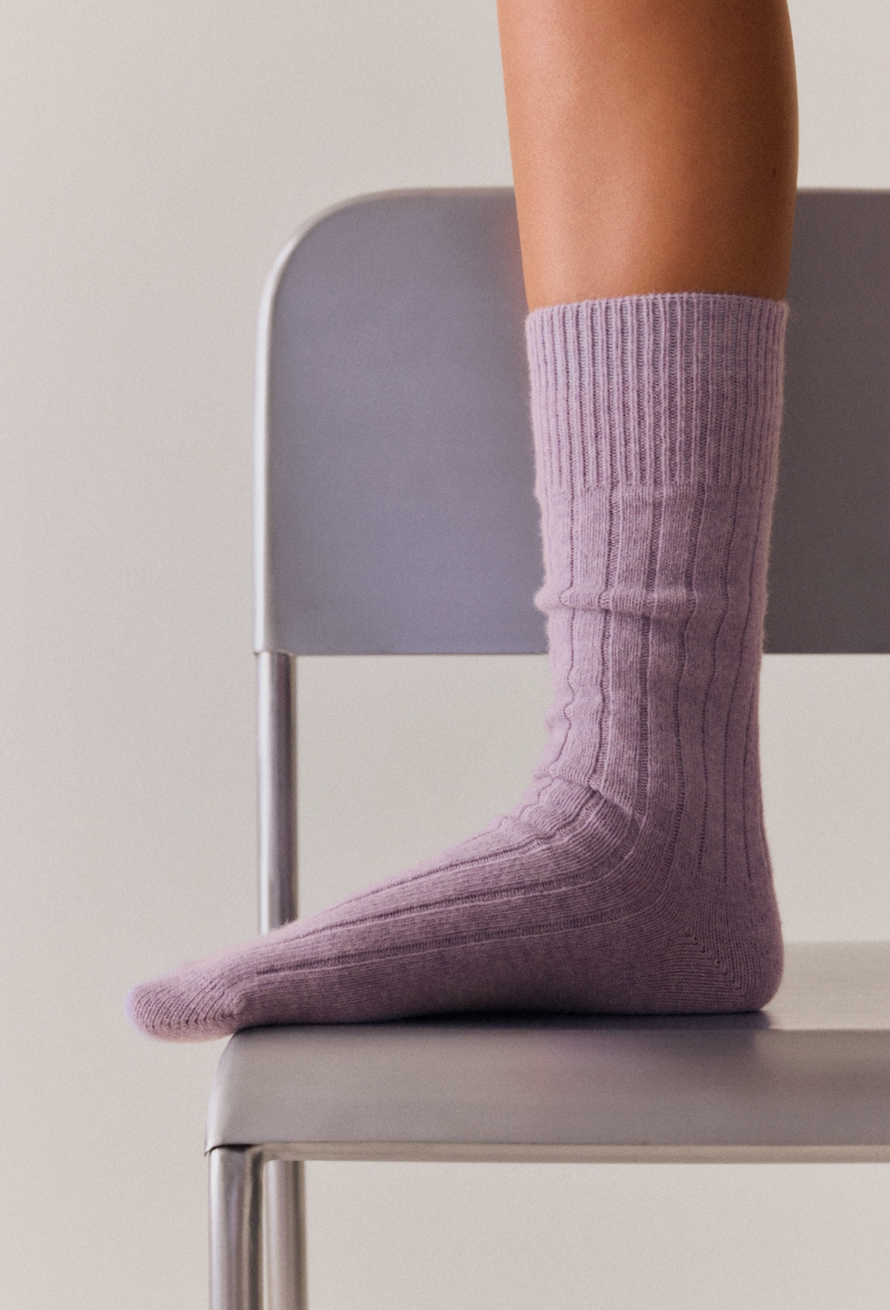 Merino Bed Socks in Parma Violet