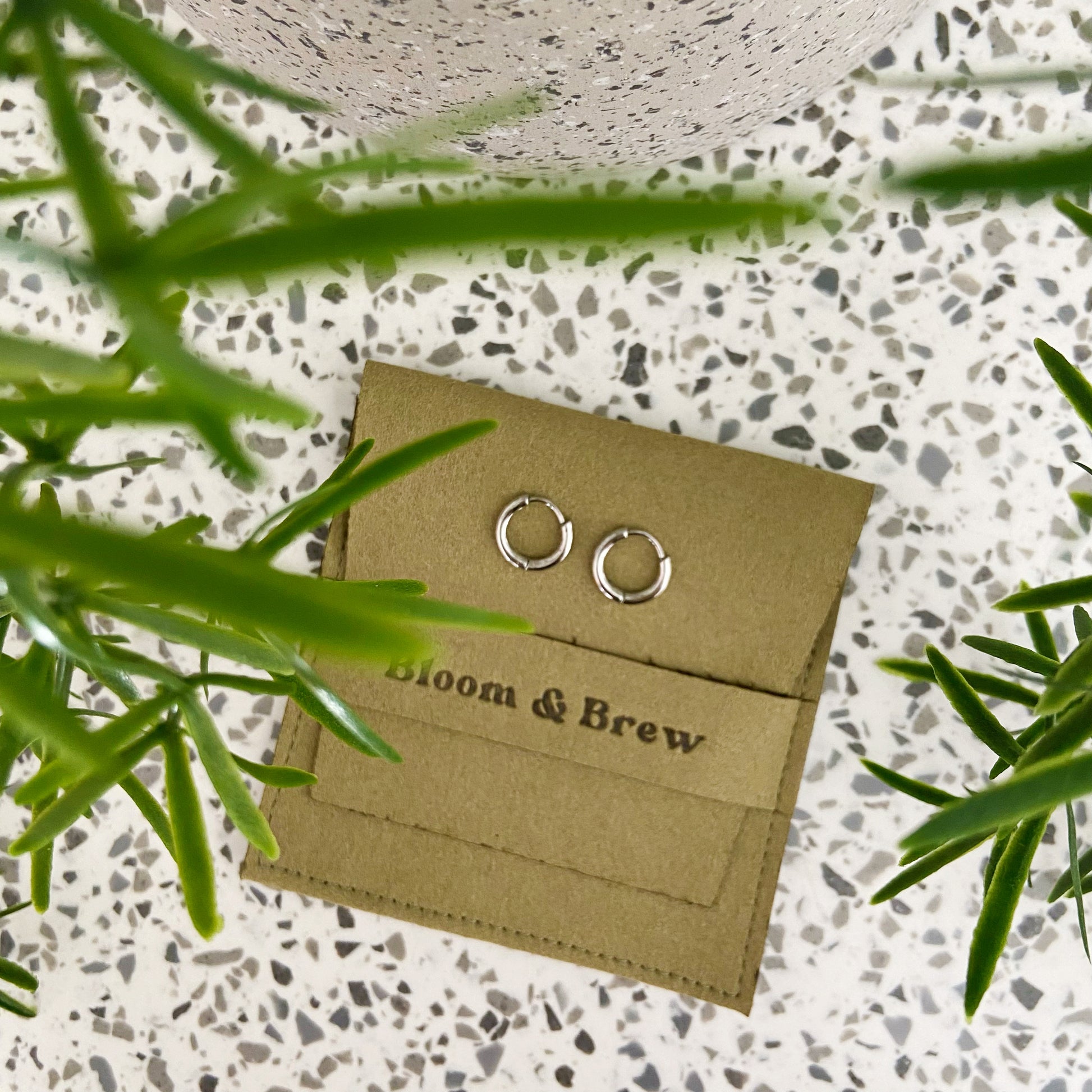 Each piece of jewellery comes in one of our olive Bloom & Brew pouches, to store your jewellery, which can also be used for polishing.