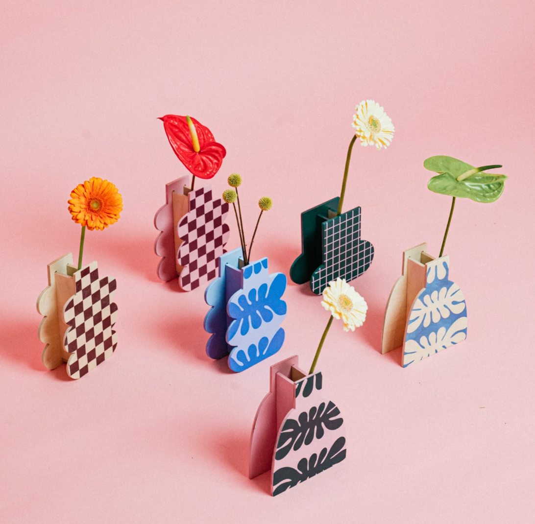 Artistic & Eco-Conscious Decor Bring a bold, modern touch to your space with our new handcrafted wooden vases. Lovingly crafted from sustainably sourced birch wood, this statement vase features a clear glass insert—perfect for displaying fresh flowers or standing alone as a statement piece.