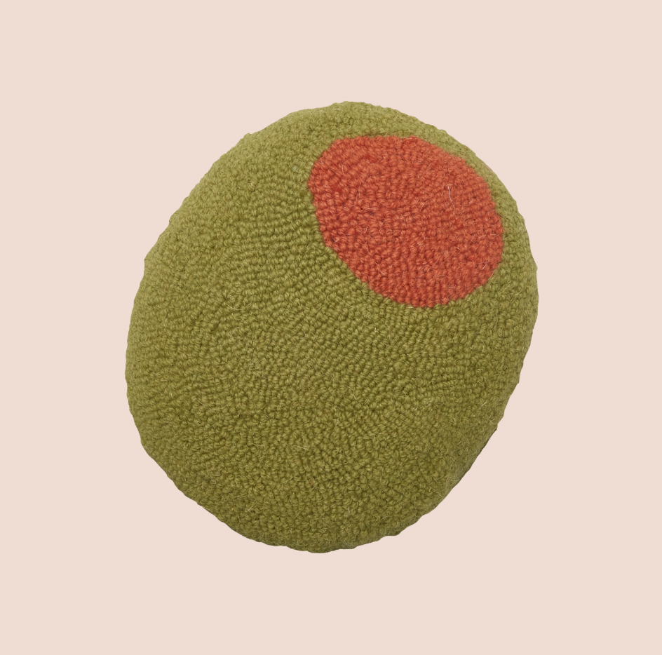 A playful & cute Olive cushion, a unique wool hand-hooked cushion perfect as a unique accent to your home or as a gift.
