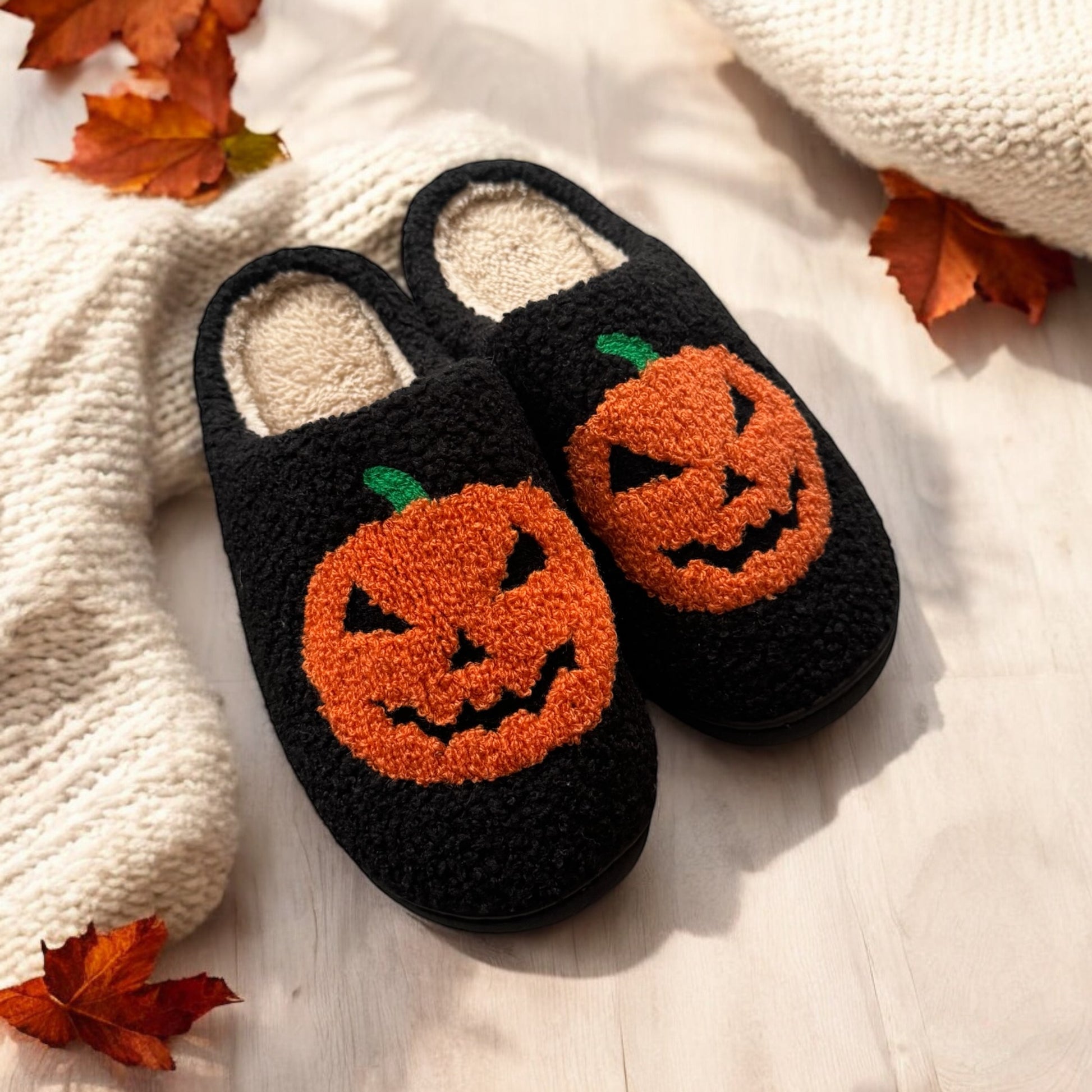 Introducing our new Pumpkin Slippers - the perfect addition to your Halloween festivities this spooky season. Cute, spooky and also super warm & comfortable with a fluffy inner. Slip into these Halloween slippers and put on your fav scary movie! Responsibly made.