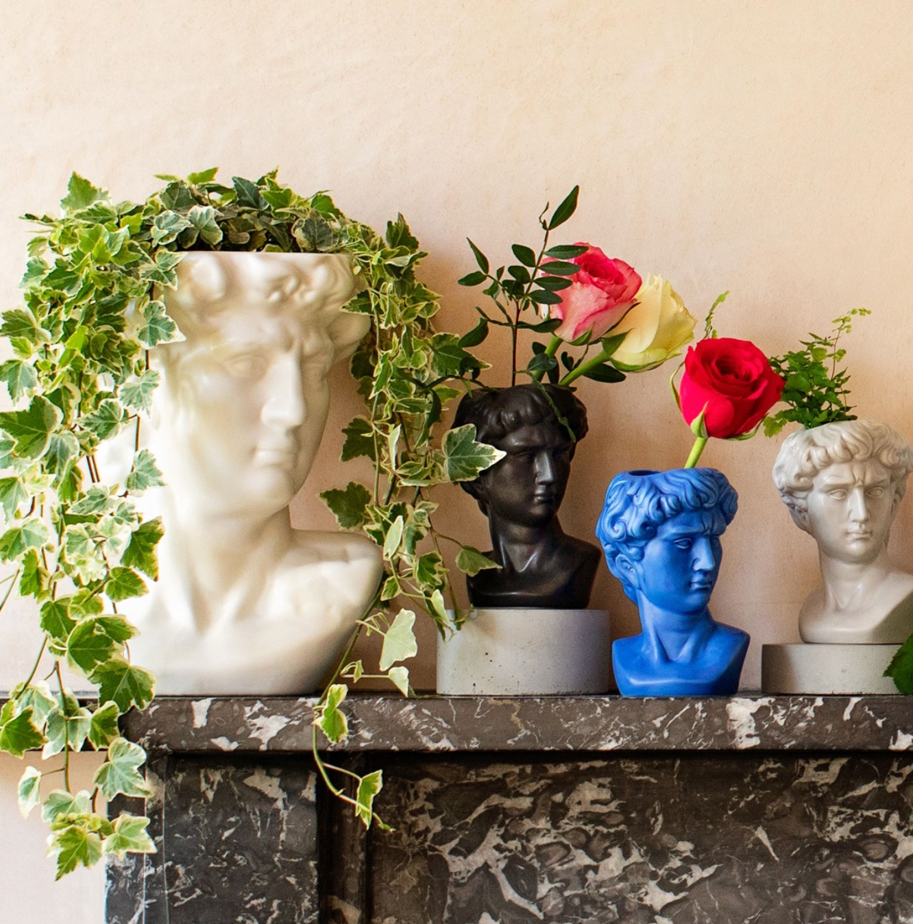 Small black greek bust vase perfect for a mini dried flower bunch or even as a paint brush/ pen/ makeup brush holder!