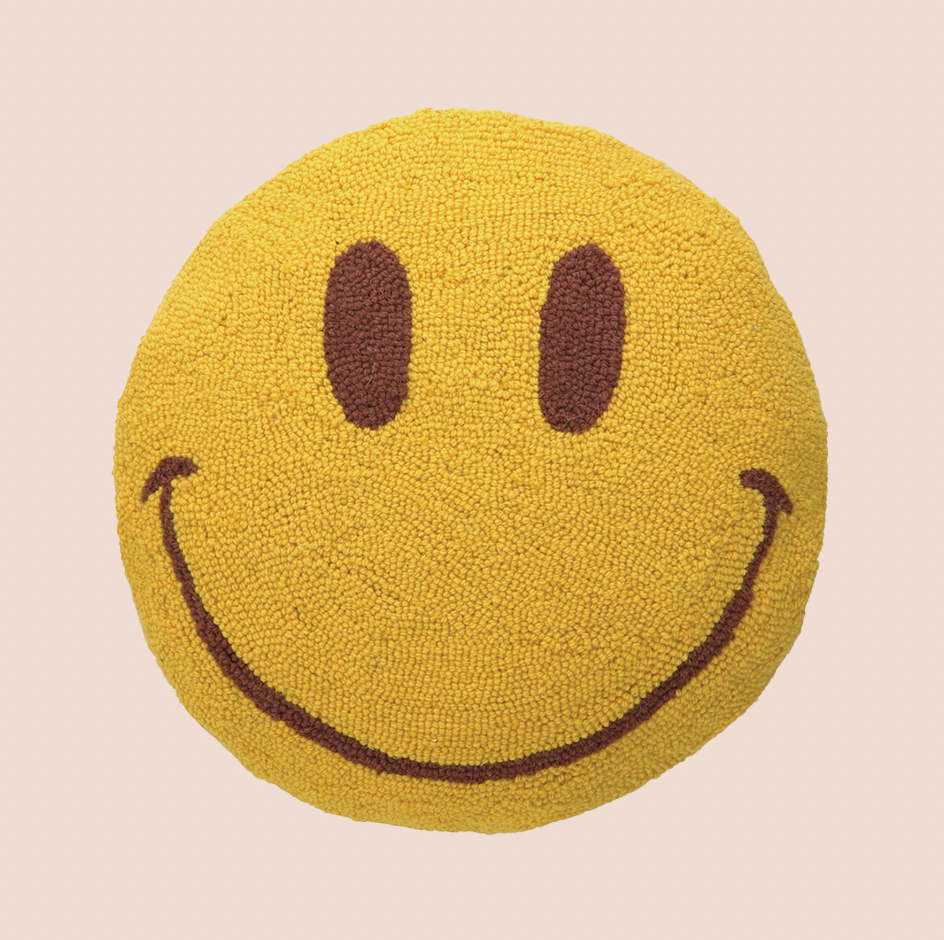 Good vibes only with our new large Smiley Wool Hook Cushion, a unique wool hand-hooked cushion perfect as a playful accent to your home or as a gift.
