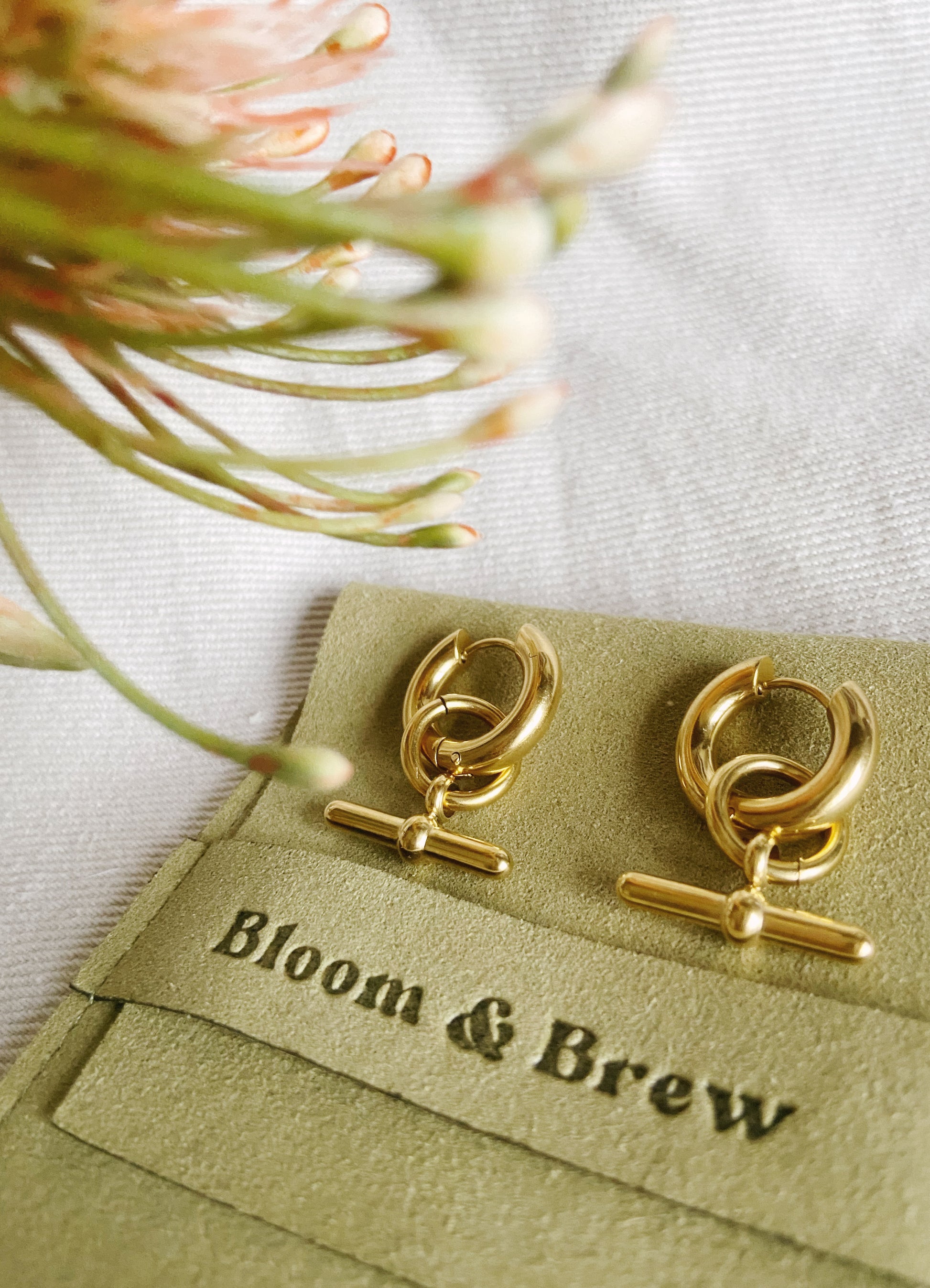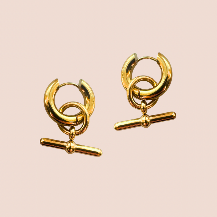 Our Olympia T Bar Hoop Earrings are crafted from 316L stainless steel with 18k gold PVD plating, making them durable and water resistant. Each pair is expertly designed for maximum comfort, ensuring maximum style with minimal discomfort. This pair is super versatile, as the T-bar feature can also be detached if you want to change to just the hoops, making these a staple for going from day to night too!