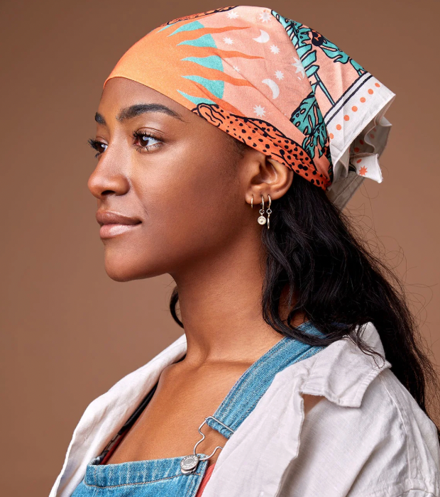 Perfect for wearing as a headscarf, necktie, or wrist accessory, The Panthera Bandana is versatile and adds a pop of color and pattern to your ensemble. Plus, with every purchase, Cai & Jo plants a tree, supporting reforestation efforts.