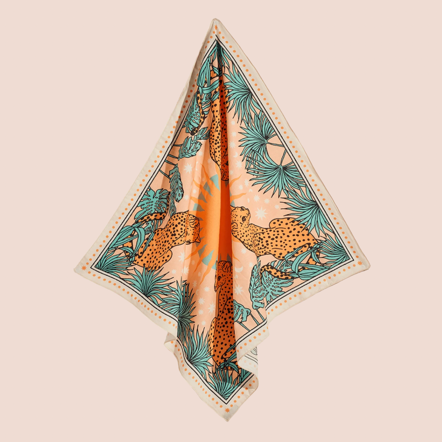 Embrace nature-inspired elegance with The Panthera bandana. Featuring a captivating design of leopards amidst lush foliage, this accessory adds a touch of wild sophistication to any outfit. Crafted from 100% GOTS-certified organic cotton, it's as eco-friendly as it is stylish.