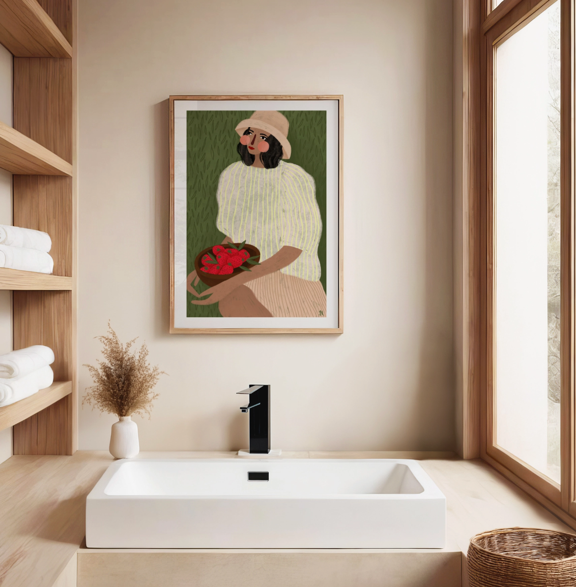 Woman With Strawberries A3 Fine Art Print